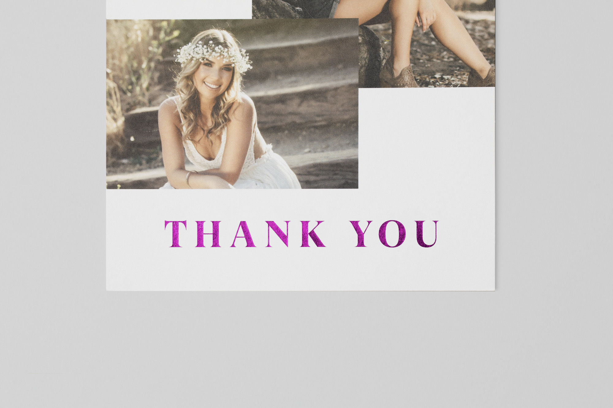 Available for the exterior of vertical and horizontal 5×7" Folded Cards, along with 5×5" Trifold Cards. Design your own using our sizing templates, or use one of the simple layout options in our blank templates to create sleek, minimal card designs with your images.