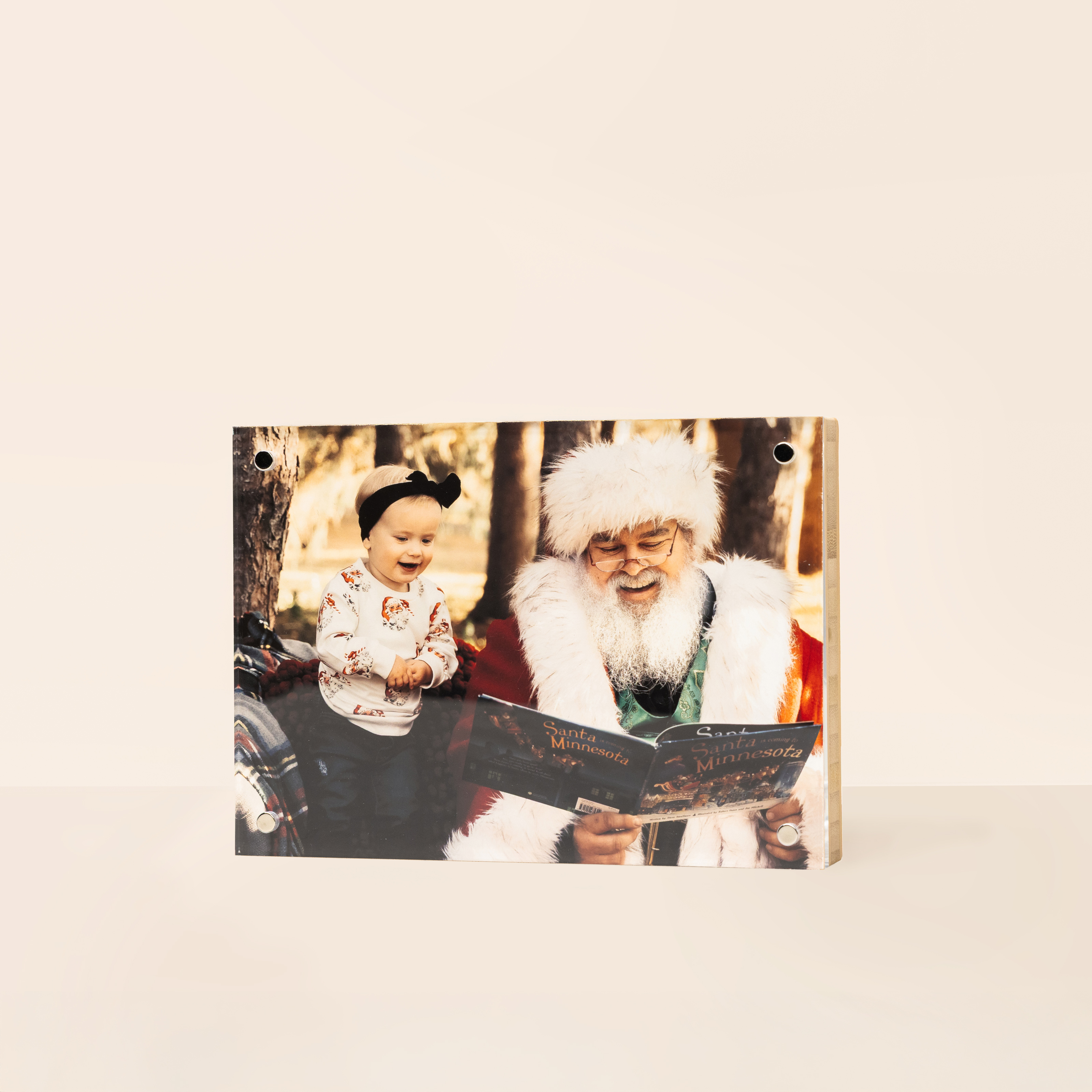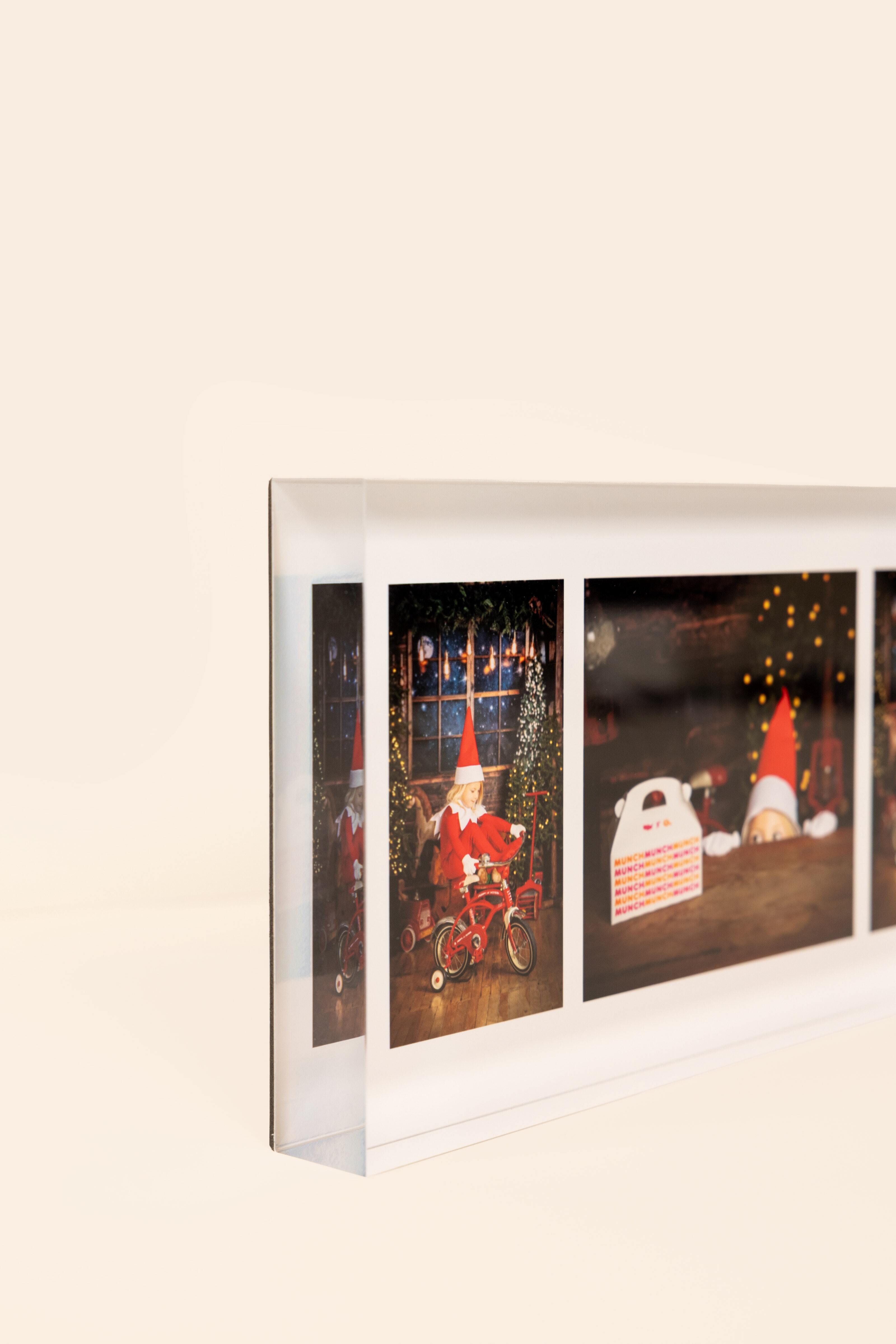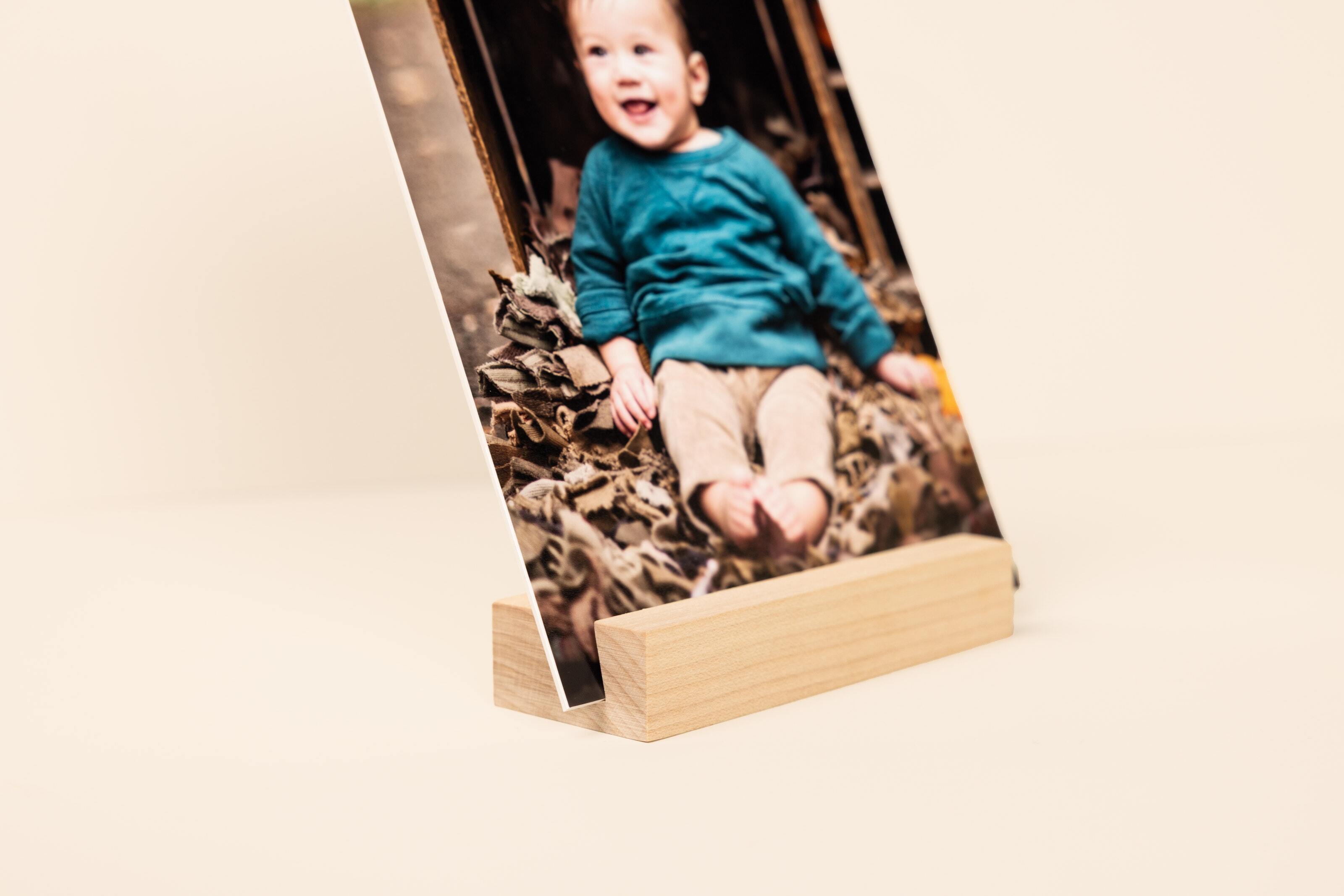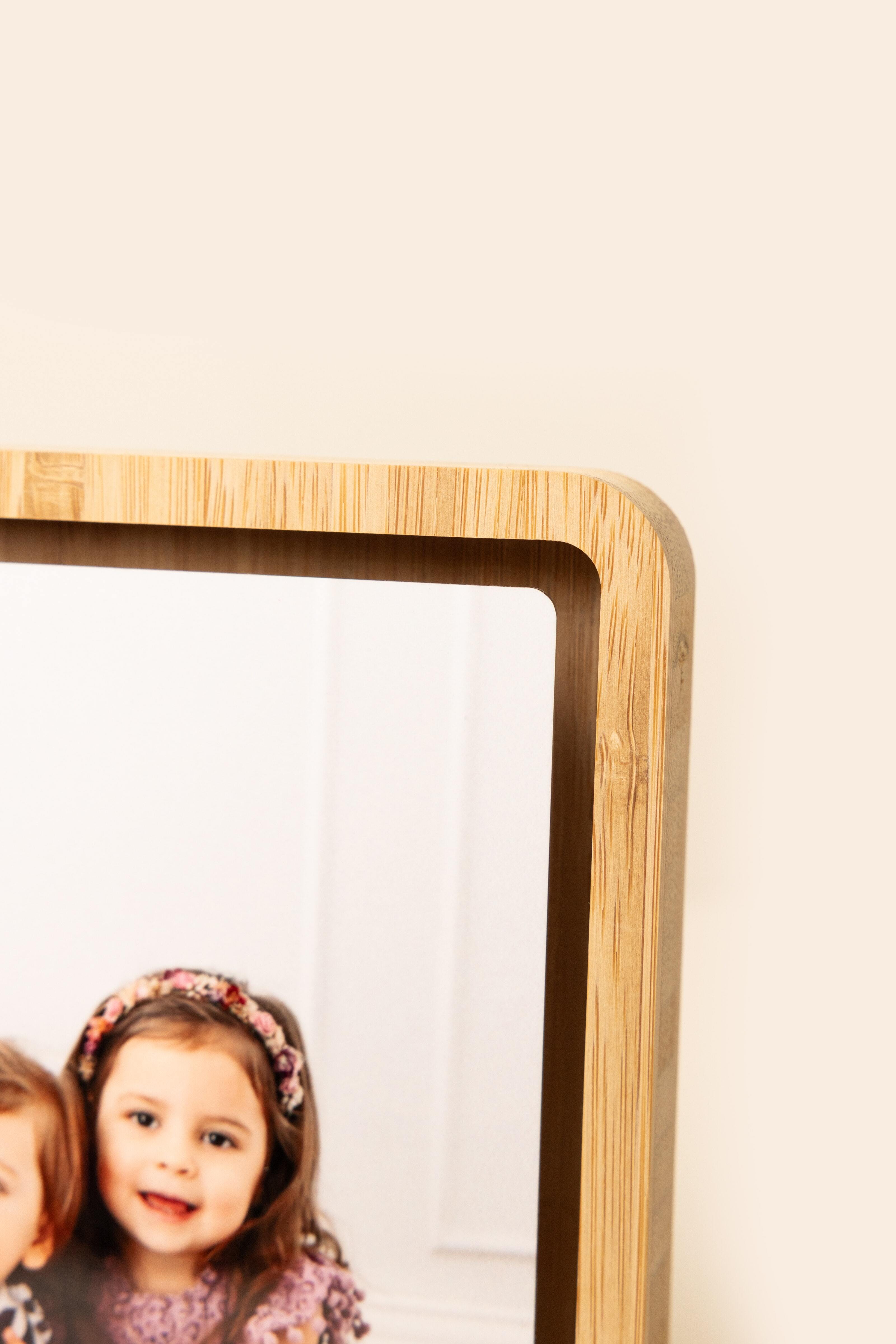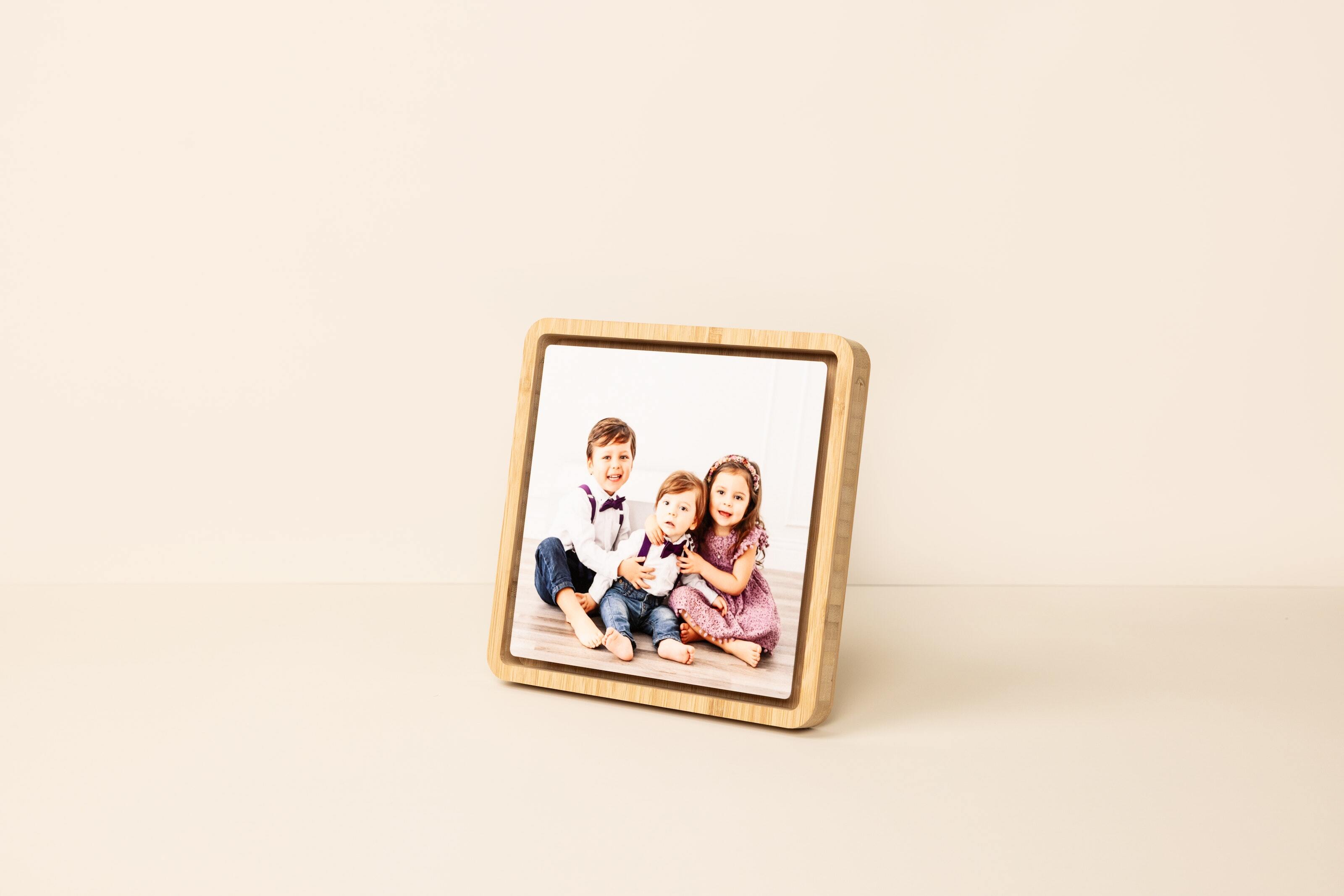 Display 5×7" prints or Mini Snapshots in a sleek bamboo block with magnetic clear acrylic for a swappable display.