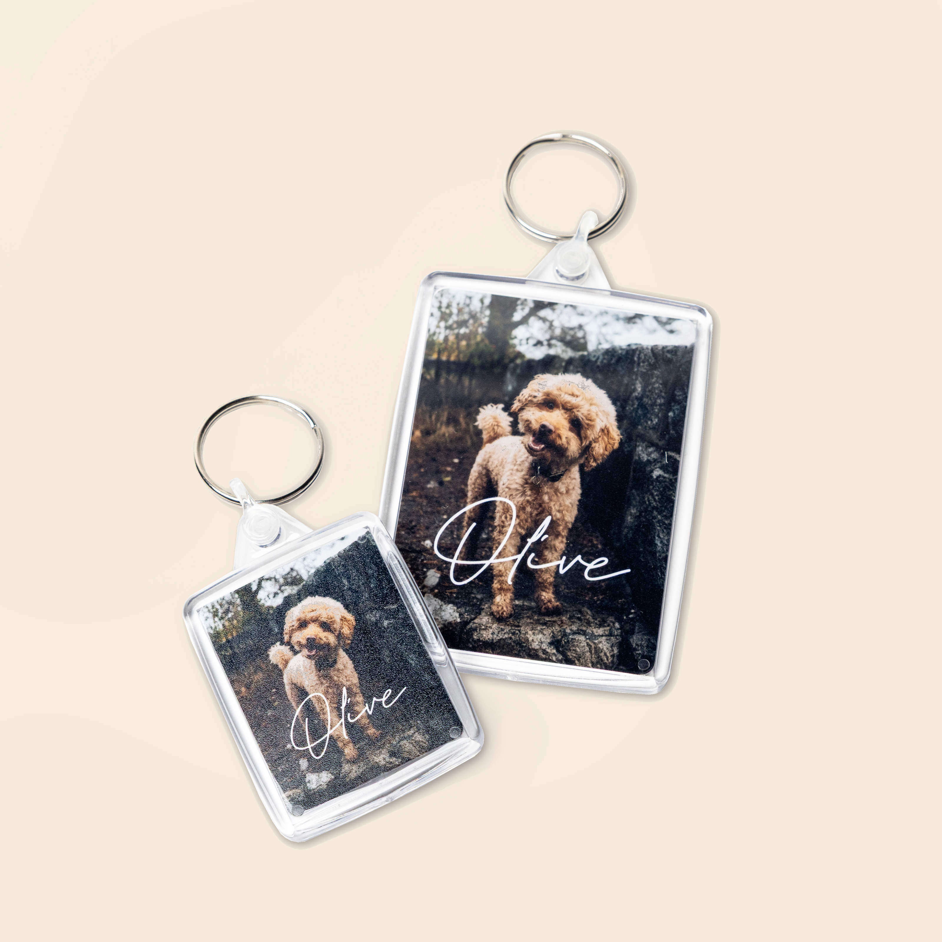 Explore our metal or acrylic photo keychains, double-sided for portraits, milestones, and more.