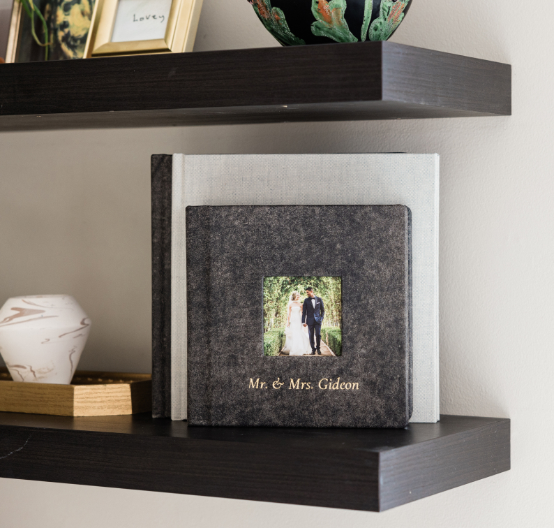 Level up your Album delivery with a protective keepsake box available in a variety of fabrics or photo cover.