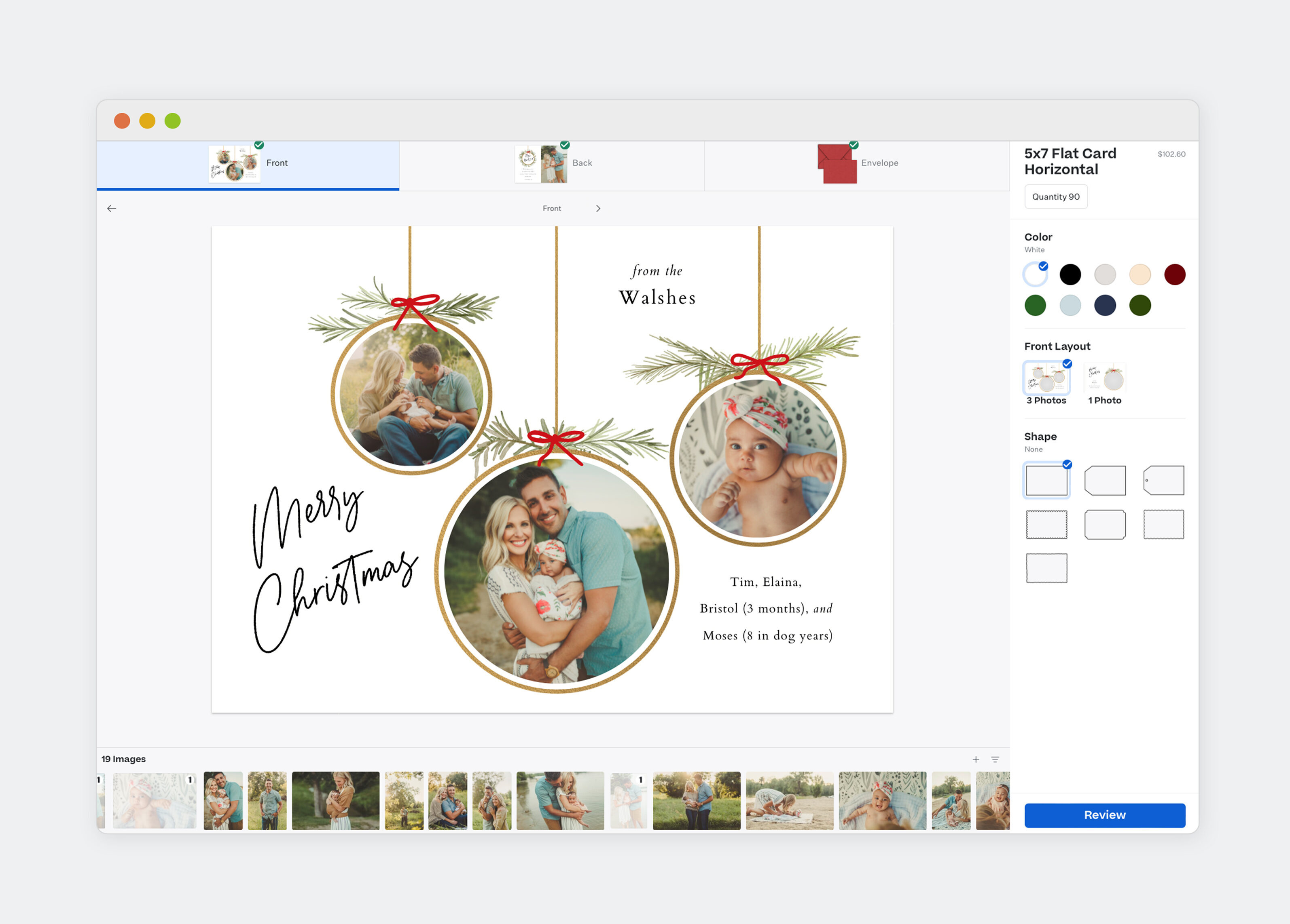 Our seamless process for designing, printing, and delivering client cards is easy with our Card Editor. Experience the joy of drag-and-drop Holiday Card customization as you craft personalized cards for your clients in minutes.