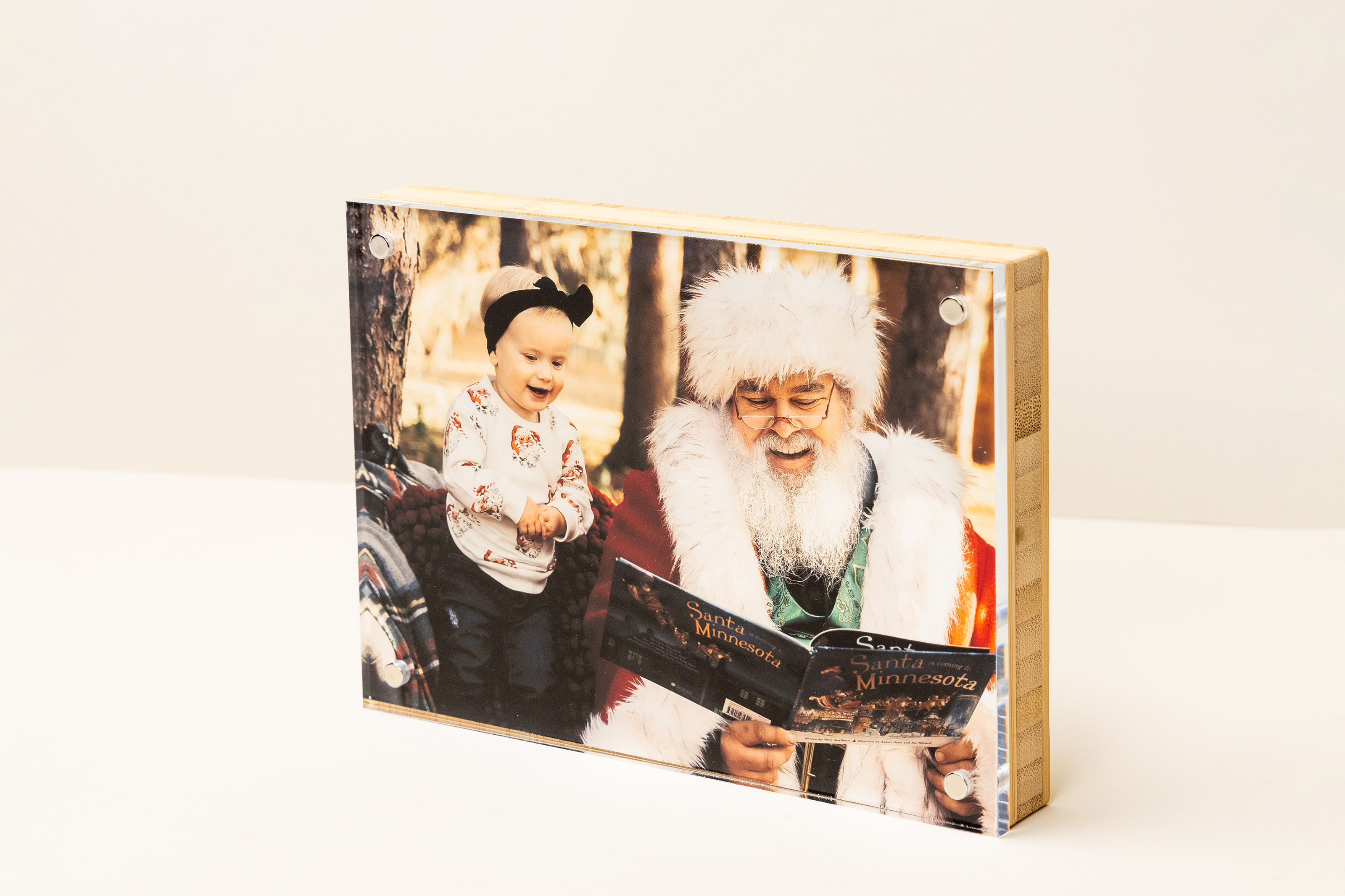 Make your client’s images shine with this highly popular 1" thick tabletop display. Using Fine Art Glossy paper and crystal clear acrylic, you can turn your client's favorite family portrait into a modern holiday keepsake. Acrylic Blocks are available in 7 perfect sizes. Check out our pre-made designs or engraving options to get started.