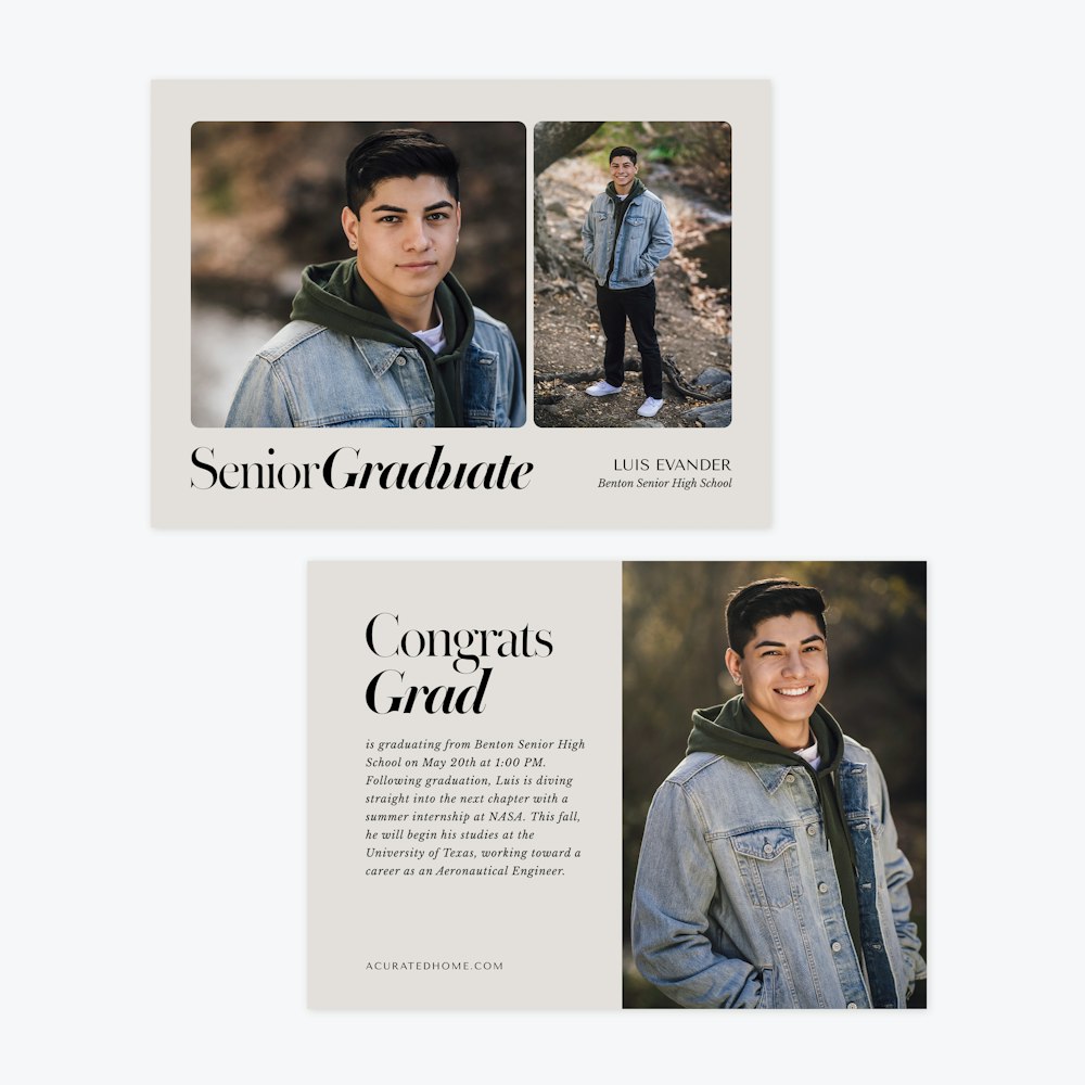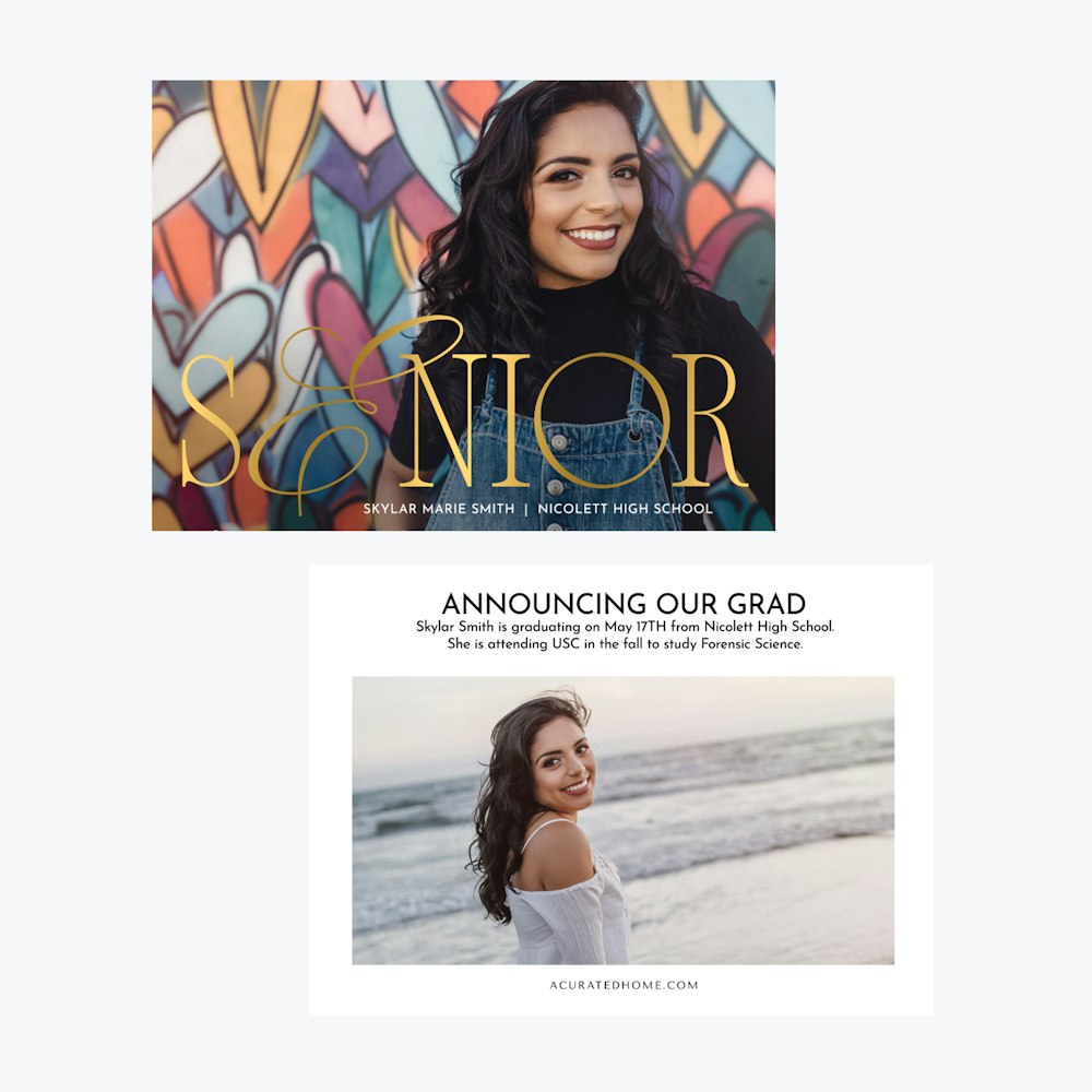 Explore one design and unlock endless possibilities. With our flexible Card Editor, you can customize layouts, colors, fonts, and finishes to create the perfect announcement for every graduate.
