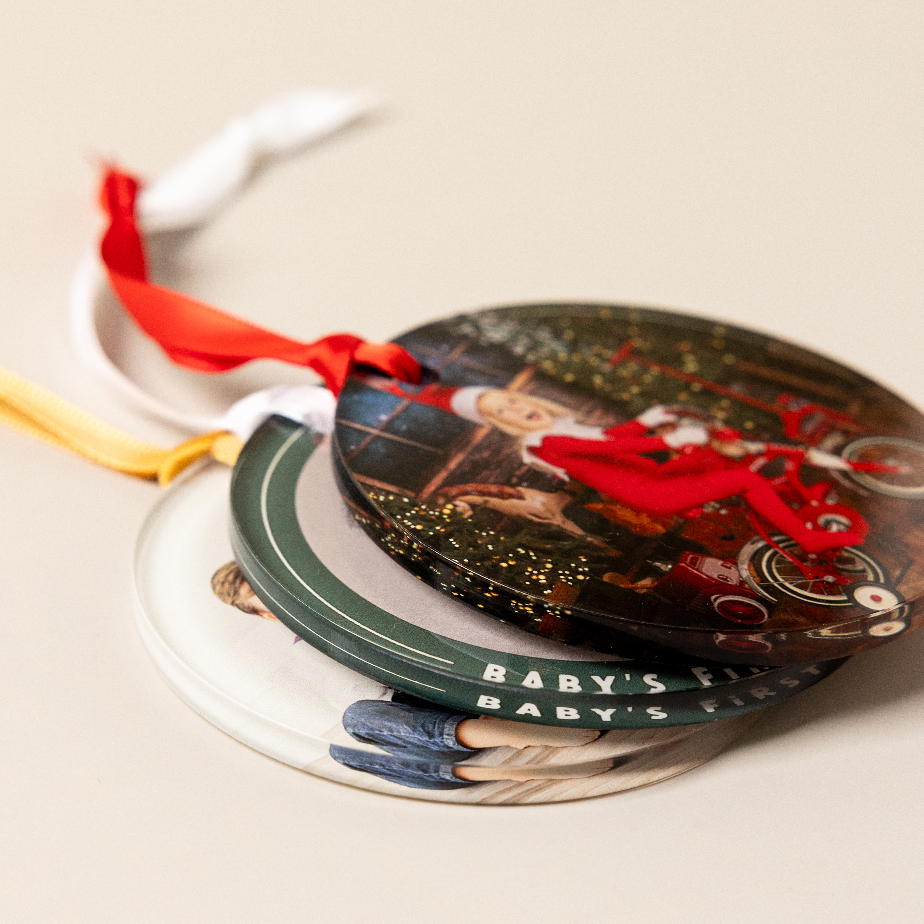 Our Acrylic Ornaments turn meaningful moments into timeless keepsakes. The glossy surface enhances color and detail, while the frosted white backing keeps your design crisp and vibrant. Whether you’re gifting clients, adding to your holiday lineup, or creating personal family pieces, these ornaments are designed to look beautiful year after year.