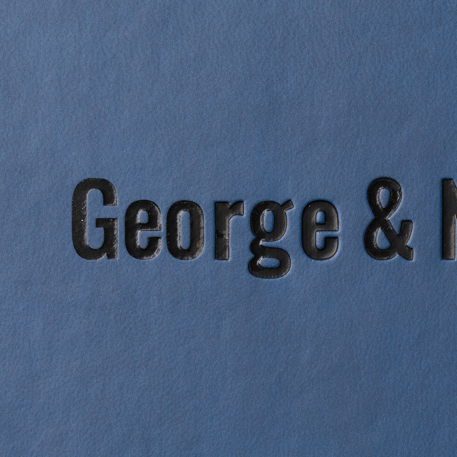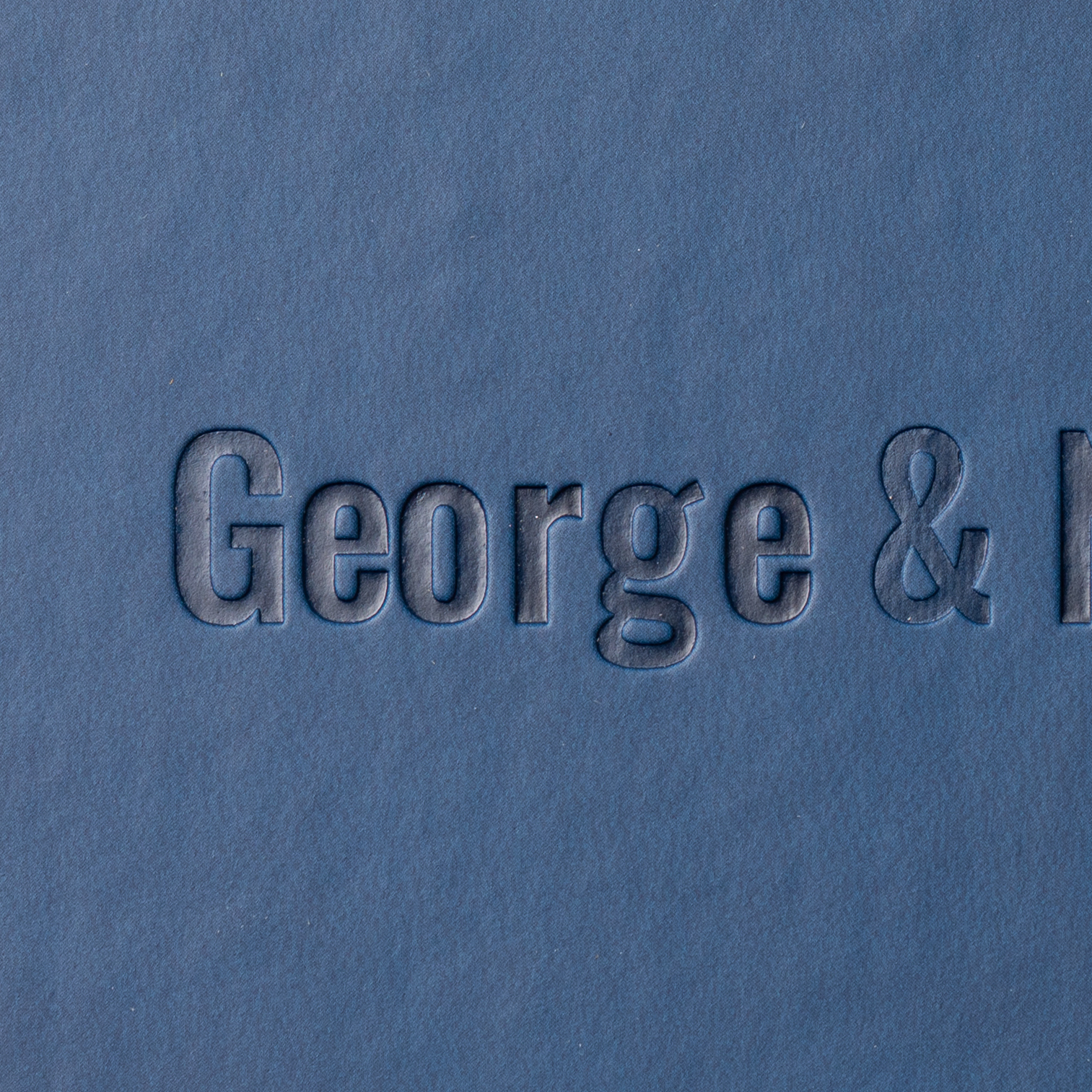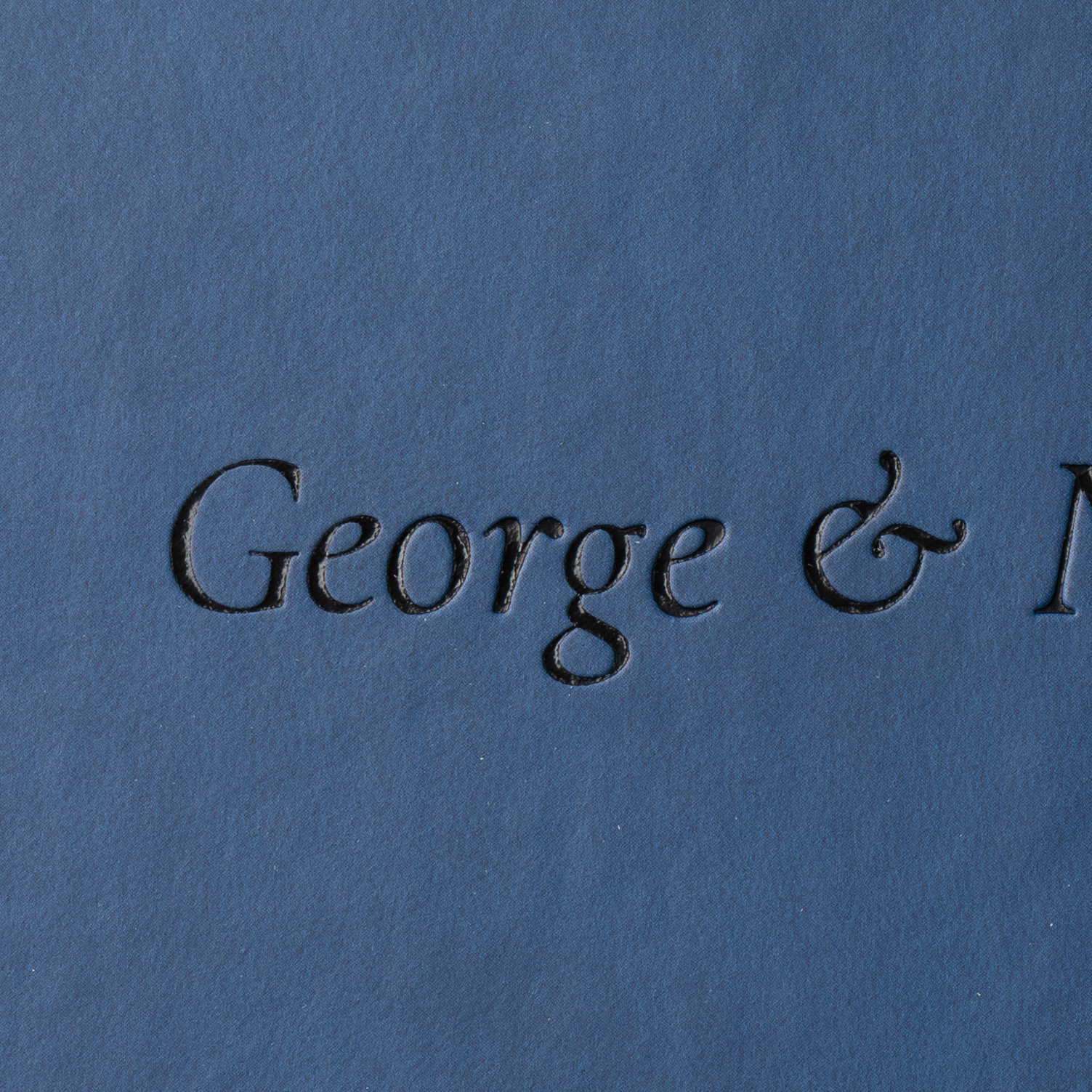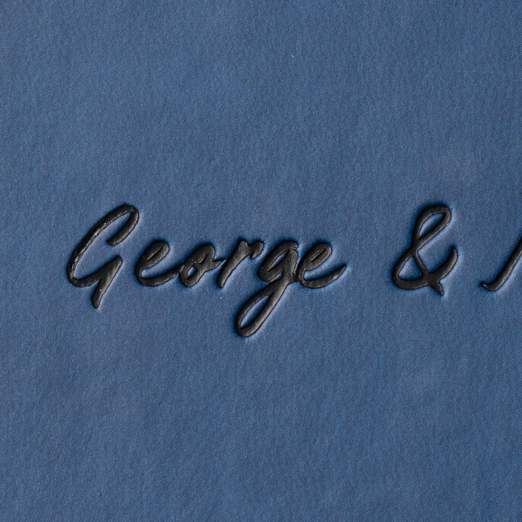 Choose between blind or a foil debossing option paired with available fonts or create a custom die |
