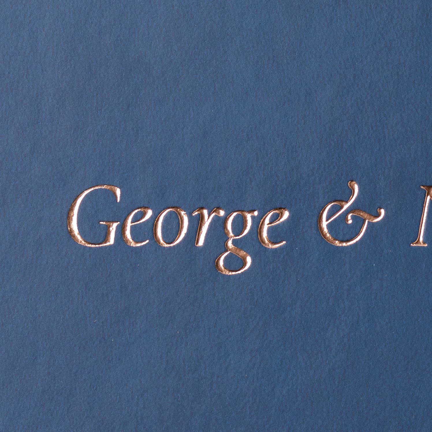Debossing uses heat and dies to press customizable text into select cover materials using our font options. Choose between a blind, matte, or metallic foil with 4 location options to personalize your cover.