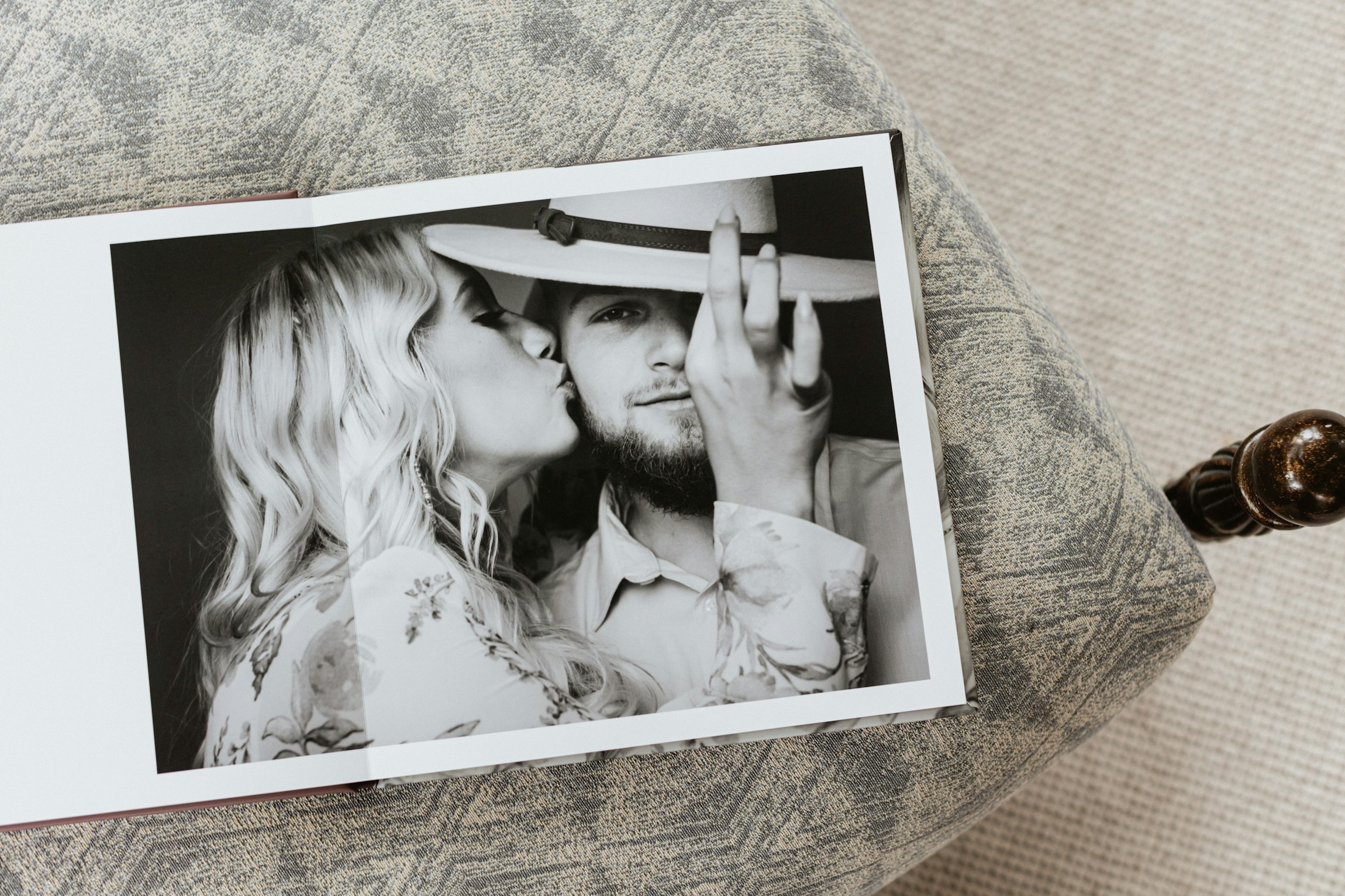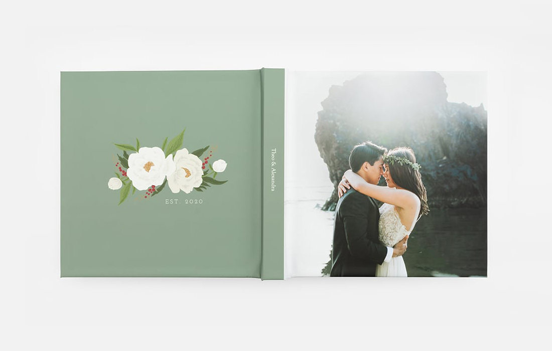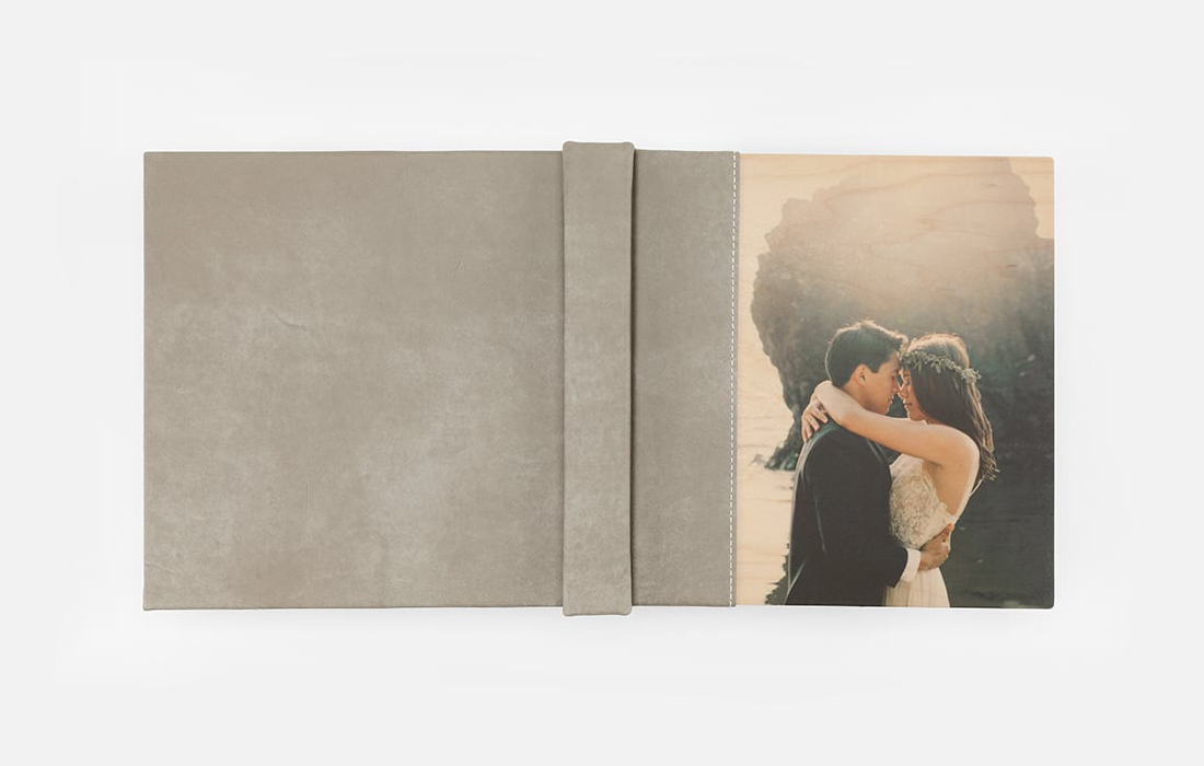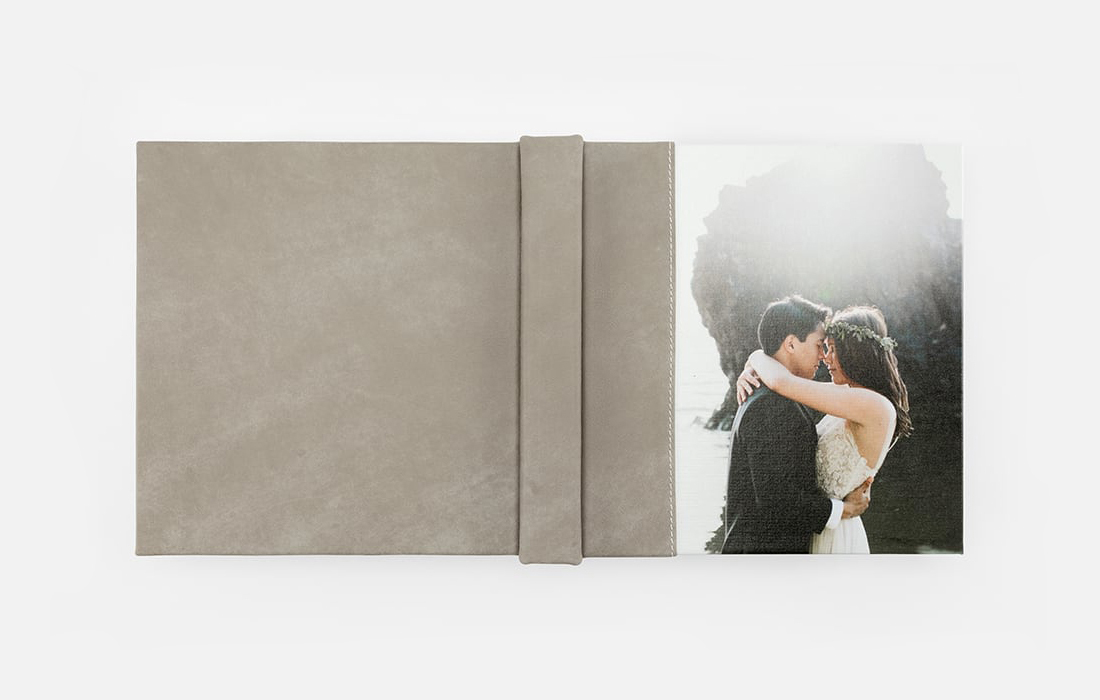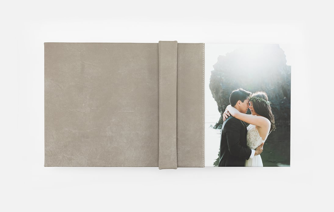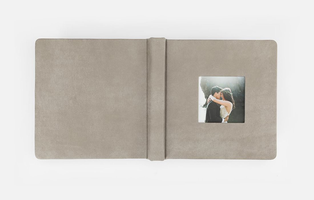 Give a sneak peek of the incredible images inside by adding a single square cameo to any fabric or leather cover.