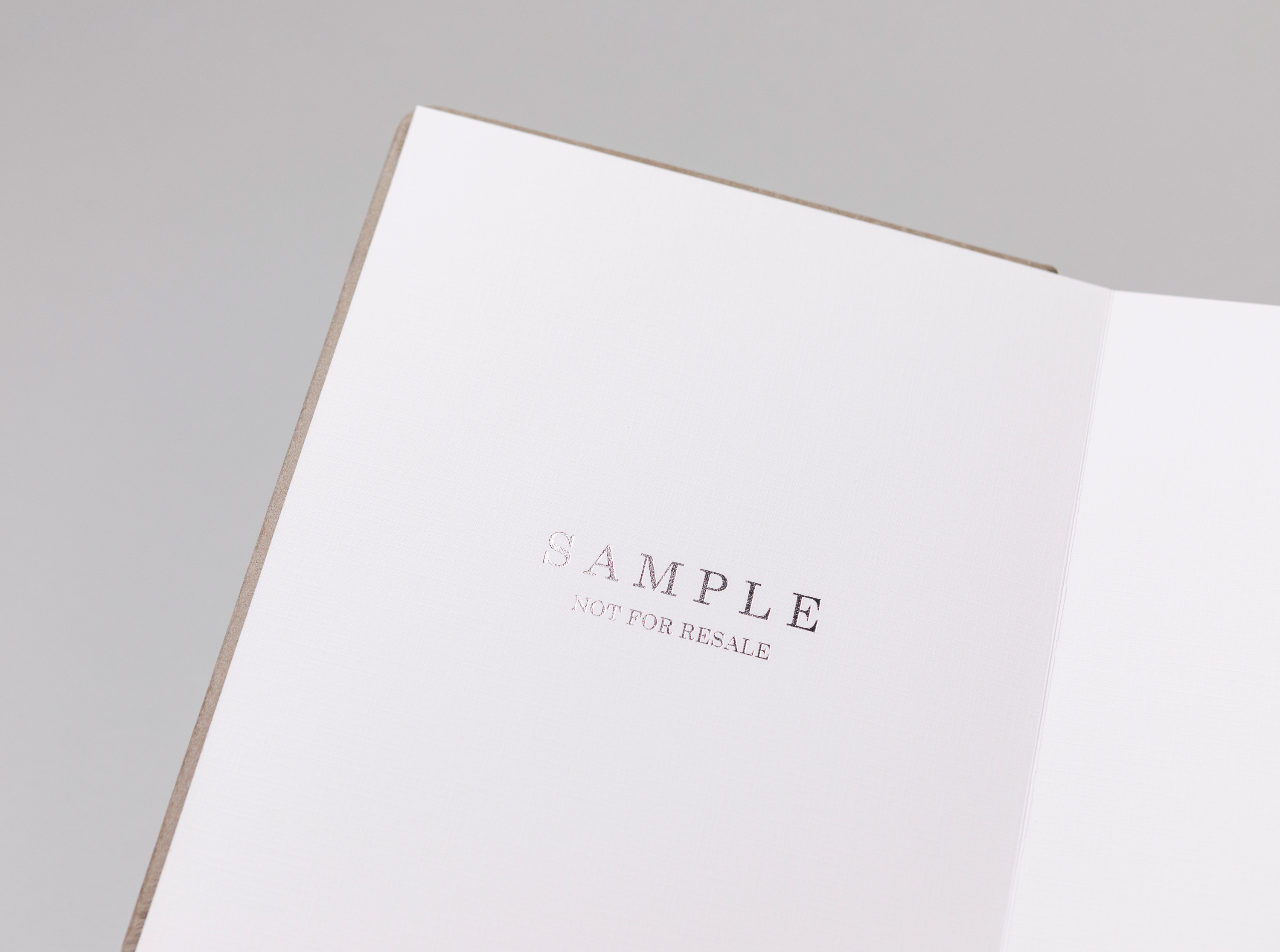 Having a physical sample can be one of the best sales tools. Each order will receive a foil-stamped "Sample" on the inside cover. Create your sample online through the designer or order directly through ROES.