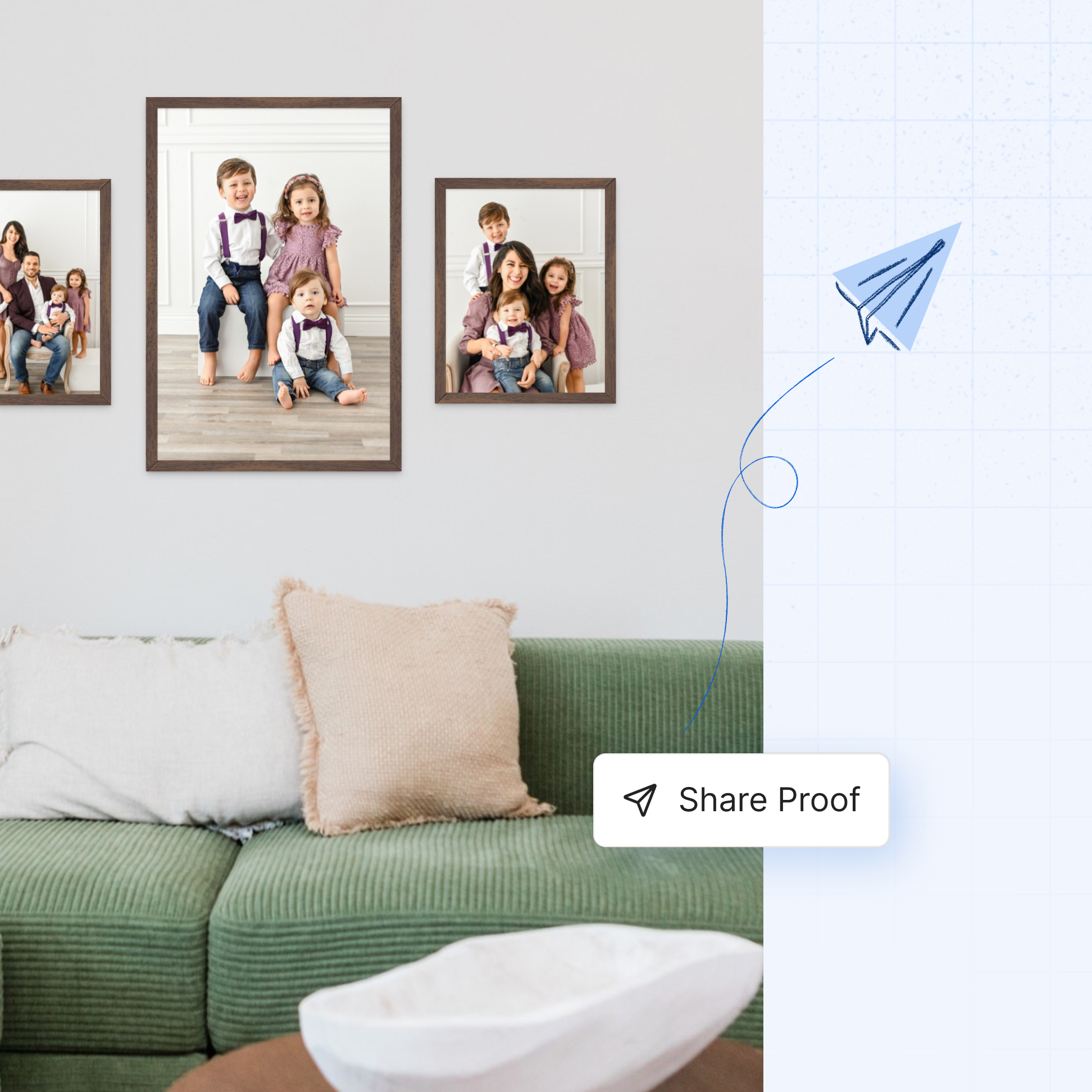 Give your clients a stunning preview of their gallery wall before ordering. This allows for a smooth approval process without displaying pricing, so clients can focus on the design, making collaboration seamless and efficient.
